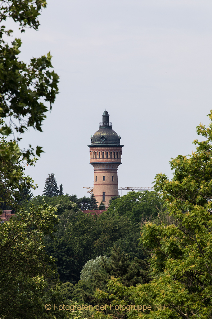 Die charakteristischen gebrannten Wiesbadener Ziegel und das Kupferdach des Biebricher Wasserturms sind weithin sichtbar. Der Nikolaus war bei der Eröffnungsfeier am 6. Dezember 1897 sicher dabei.
