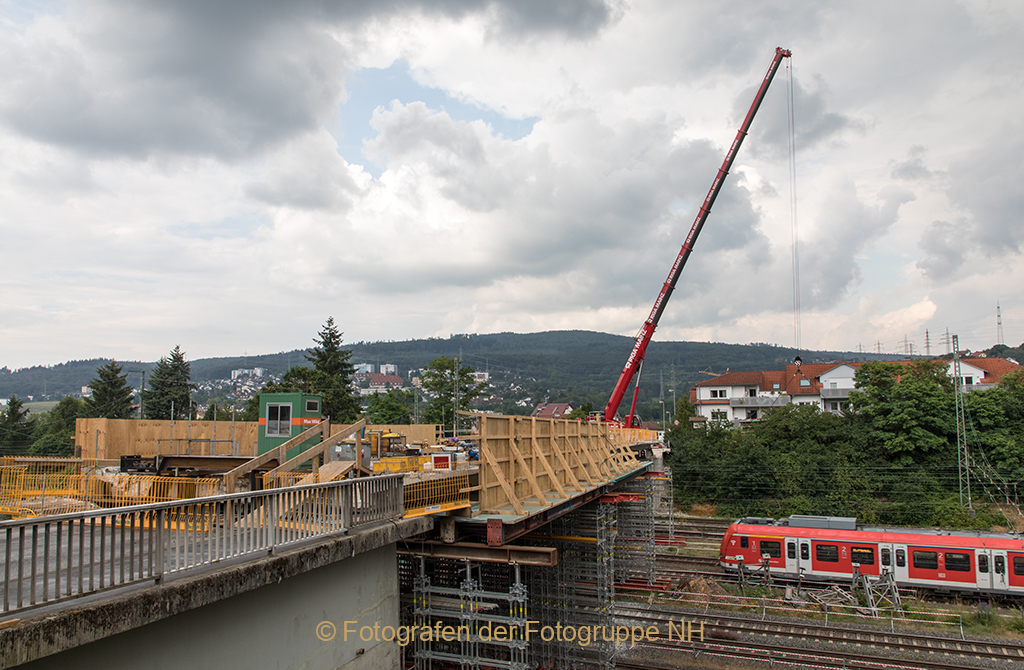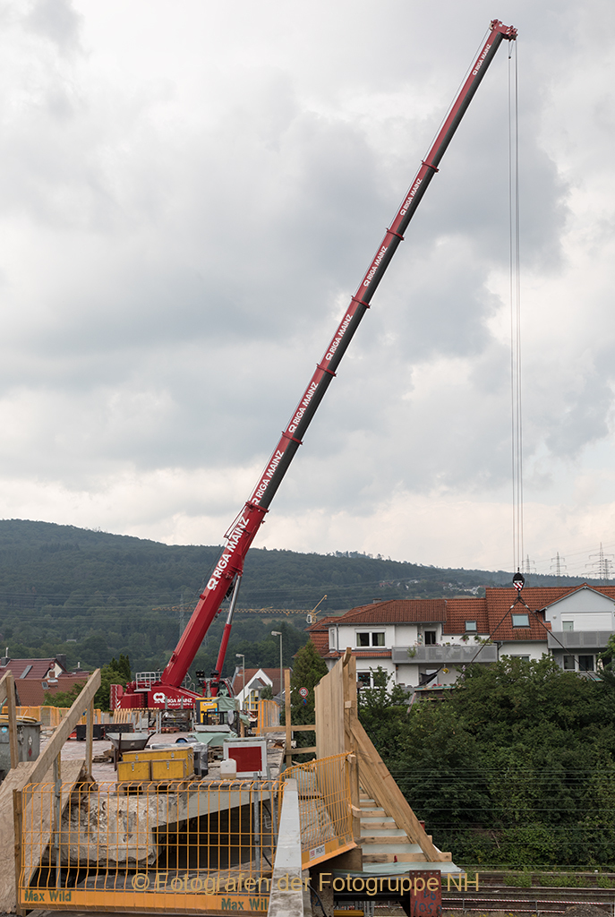 Unsere Rückfahrt wird durch rohe Holzbretter, gelbe Bauzäune und einen mächtigen roten Kran, für meinen Enkel ein imposanter Blickfang, abrupt unterbrochen. Dieses unüberwindliche Hindernis gilt es zu umfahren, um uns an der letzten Landmarke unserer Reise durch Land und Zeit zu orientieren.
